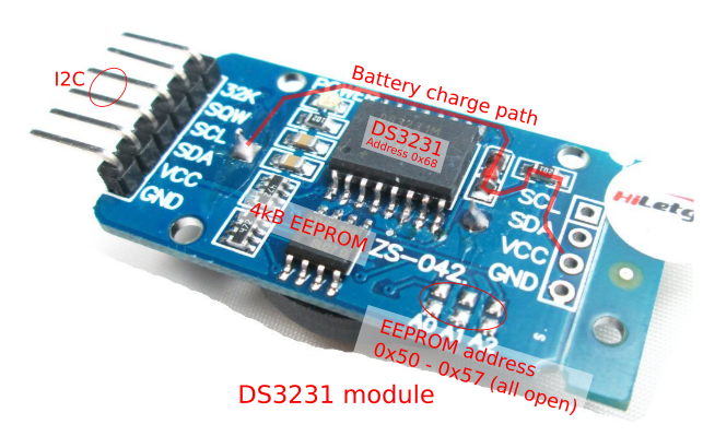 以前、Arduinoでの検討で利用した手持ちのRTC(DS3231)モジュール、I2Cで